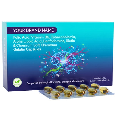 Omega-3 Fatty Acid, Alpha Lipoic Acid, Cyanocobalamin, Chromium Picolinate & Selenium Softgel Capsules provide cardiovascular, antioxidant, and metabolic health support. Evitalife Life Science, with advanced manufacturing, strict quality assurance, and reliable production, is your ideal partner for Third-Party Manufacturing of premium softgel capsules.